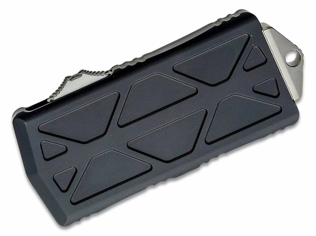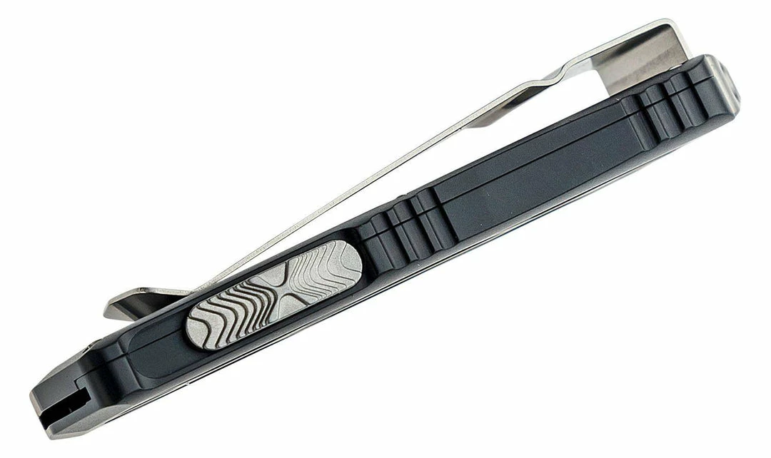Microtech 157-12 Exocet OTF Money Clip AUTO Knife 1.98″ Stonewashed Plain/Serrated Double Edge Blade, Black Aluminum Handles