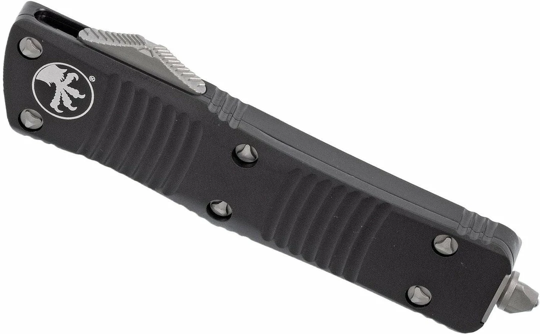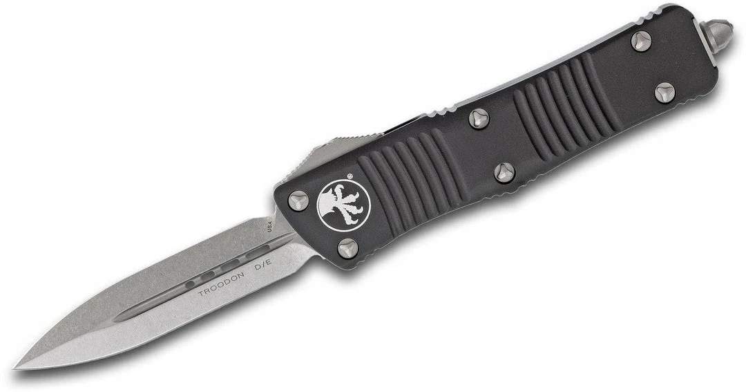 Microtech Troodon 3.06″ Stonewashed Double Edge Dagger Blade, Black Aluminum Handles