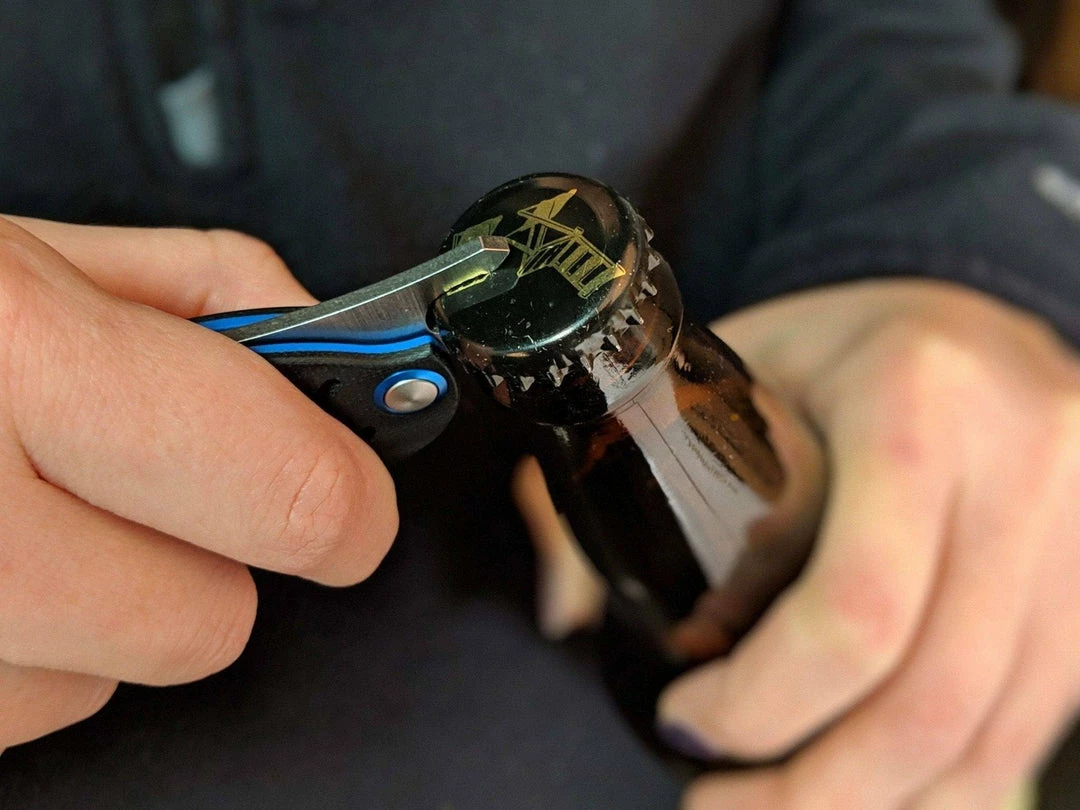 - Black and blue G-10 handles that provide excellent grip.