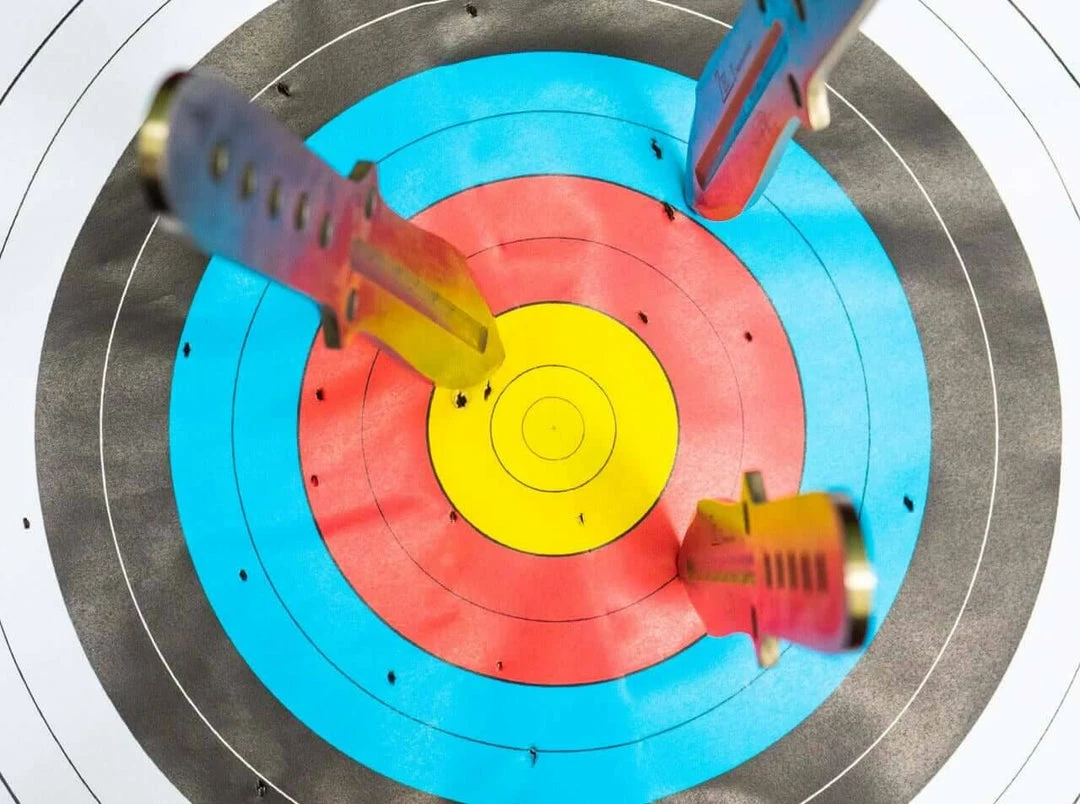 The Throwing Knife Magnum Ziel II was designed by John Bailey and is suitable for beginners as well as professionals. The Full Tang construction of 420 stainless steel is well balanced, guaranteeing every throw is a pleasure. The grooves and depressions have been produced strictly according to a pattern devised by Bailey. From the designs of the professional knife thrower John Bailey speak over 40 years of experience. The expert in the field has already published a variety of articles, including Blade Magazine, the American Survival Guide and the American Knife Thrower’s Alliance Newsletter. The set consists of three throwing knives and a combination sheath.