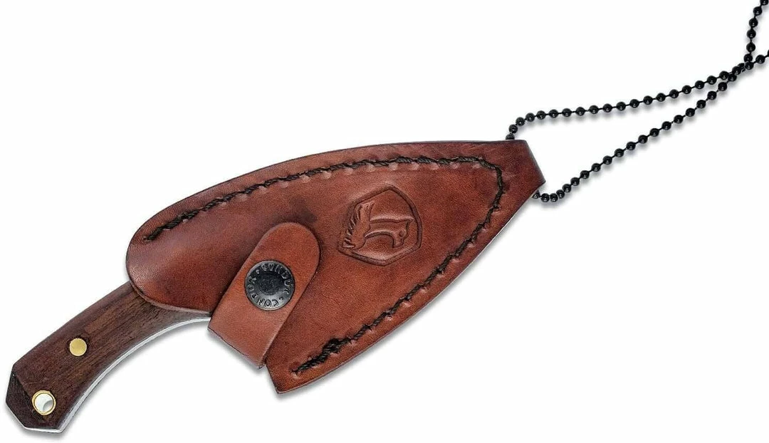 Condor CTK802-3.26HC Pangui Fixed Blade Neck Knife 3.27″ 1095 Carbon Steel, Walnut Wood Handles, Welted Leather Sheath