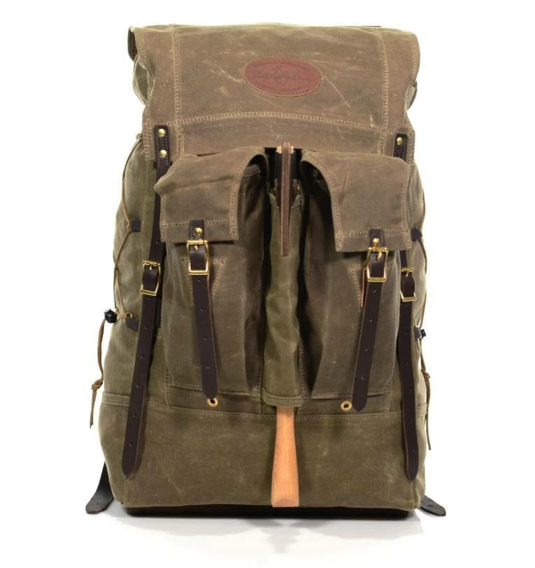 Bushcraft– wilderness self reliance skillsβ the ability to not only survive, but thrive for extended periods in the woods.Β For some, it can take a lot of gear to thrive, for others, all they need is a trusty knife, a hatchet, and the wealth of knowledge accumulated over a lifetime. Our Isle Royale Bushcraft Packs are built to carry big or small loads. All three sizes are designed narrow, for exploration, slipping between dog hair aspen and brush, these packs blend classic materials and construction with updated features for modern classic backwoods adventures. With lots of organization in the form of pockets, attachments and straps, thereβs space to keep gear where it needs to be. Plus, thereβs plenty of capacity in the tall, narrow pack body.