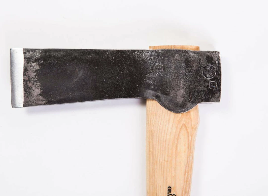 The Gränsfors Mortise Axe is a specialist axe designed for hewing sills and notches in joints. The axe has a long, narrow head, making it easier to work on large logs. The shape enables you to hew a long way down into the notch, where otherwise you would have to use a chisel. With a little practice, the Mortise Axe makes the job faster and more efficient. The axe is delivered with a sheath.