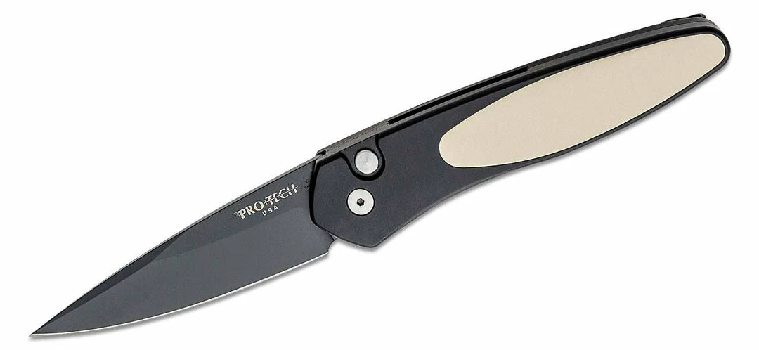 Pro-Tech Knives is proud to be the first choice of Police and Military professionals around the world. Pro-Tech Knives are built to serve and serve well. The Newport is a thin, sleek side opening AUTO with a 3″ blade made from CPM-S35VN stainless steel. It’s built along the lines of the Godson but with a more ergonomic and more easily carried handle. It functions basically the same as all non-OTF AUTOs from Pro-Tech; just depress the actuation button, then stand back and watch the show. The action is snappy, authoritative, and extremely pleasing. This Tuxedo model has a black DLC blade, black anodized aluminum handles, and an ivory Micarta inlay. Includes a deep carry pocket clip set up for right-hand, tip-up carry.