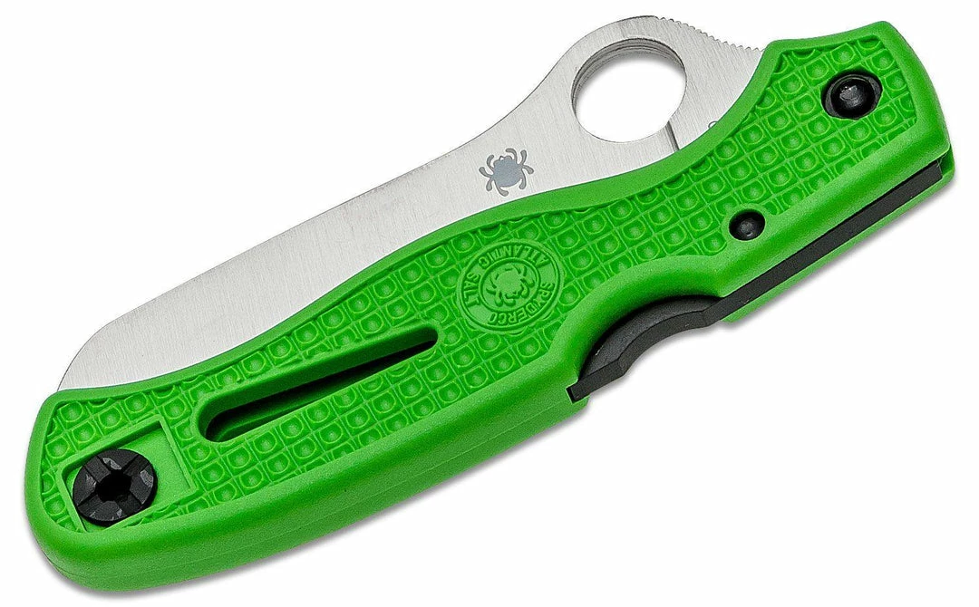 The refined features of the Salt 2 and Pacific Salt 2 found immediate favor with Spyderco fans, many of whom were also intrigued by the performance potential of Spyderco’s other ultra-corrosion-resistant blade steelโLC200N. Taking this evolutionary process one step further, Spyderco decided to make the investment to ship LC200N steel to Japan so it could be incorporated into the latest versions of the Salt lightweight models manufactured there. The result is a family of Salt folding knives proudly featuring LC200N blade steel and vibrant high-visibility green handles. Taking full advantage of the unique properties of this martensitic steel, the blades of these knives feature full-flat grinds for exceptional edge geometry and low-friction cutting performance. The PlainEdge versions offer enhanced edge retention compared to H-1-bladed Salt knives, and all models are also available in SpyderEdge format.