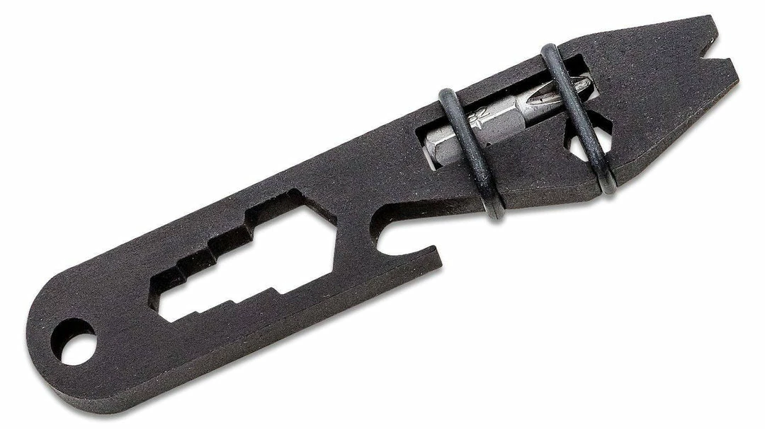 Toor Knives’ first-ever multi-tool is lightweight and includes a pry bar feature, bottle opener, four different wrench fittings, along with a detachable Phillips screwdriver bit. Weighing in at under two ounces and just over four inches in length, this sleek tool wonโt weigh down your everyday carry keychain or get in the way.