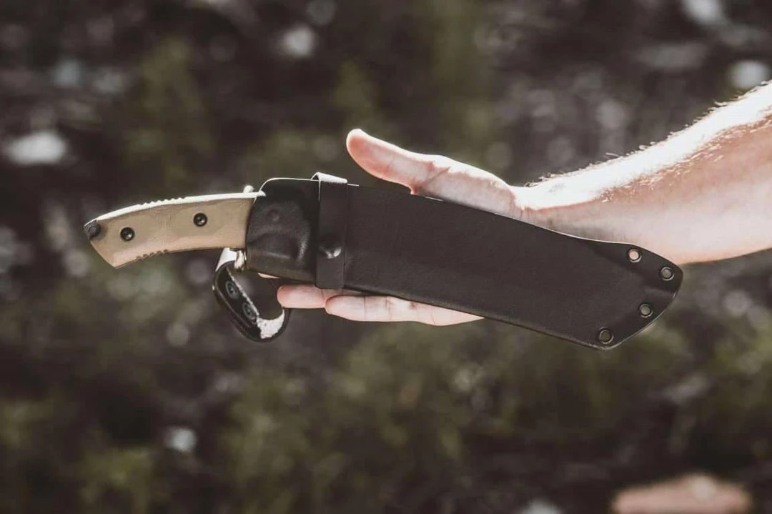 The Tundraย rekker comes with our robust Tactical Stone powder coat finish, Green Canvas Micarta, and an open-backed Kydexย sheath withย a leather dangler to make it easy to carry through thick brush and trees. It will excel in anything from chopping wood, to making traps andย ent pegs, clearing brush, and whatever else you might decide to throw its way.ย