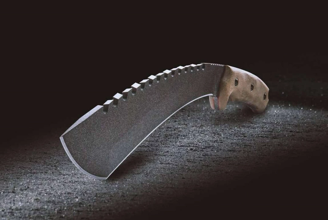 It is thinner and lighter than traditional kukris aside from the obvious fact thatย theย blade style and saw teethย are also not something you’dย seeย onย aย traditionalย kukri.ย Yet this 9″ย bladeย made with a 3/16″ 1095ย stock will be an excellent cutter in the field. The nicely rounded Micarta handles are long to provide more than one grip option for different cutting tasks. It hasย our opposing pitch saw teeth on the top soย that users can quickly and cleanly make notches in wood when setting up camp or for certain survivalย tasks.ย ย